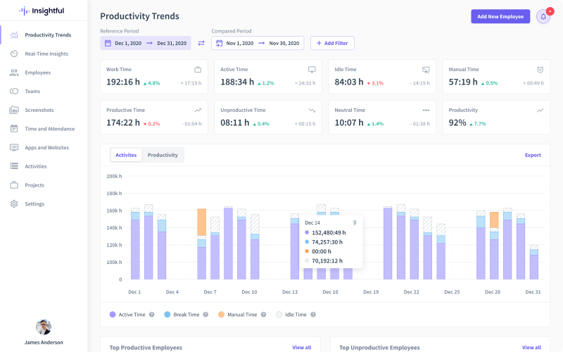 With productivity scores, benchmarking, trends and historical data, Insightful gives you a complete picture of productivity – so you know exactly what to do to improve it.